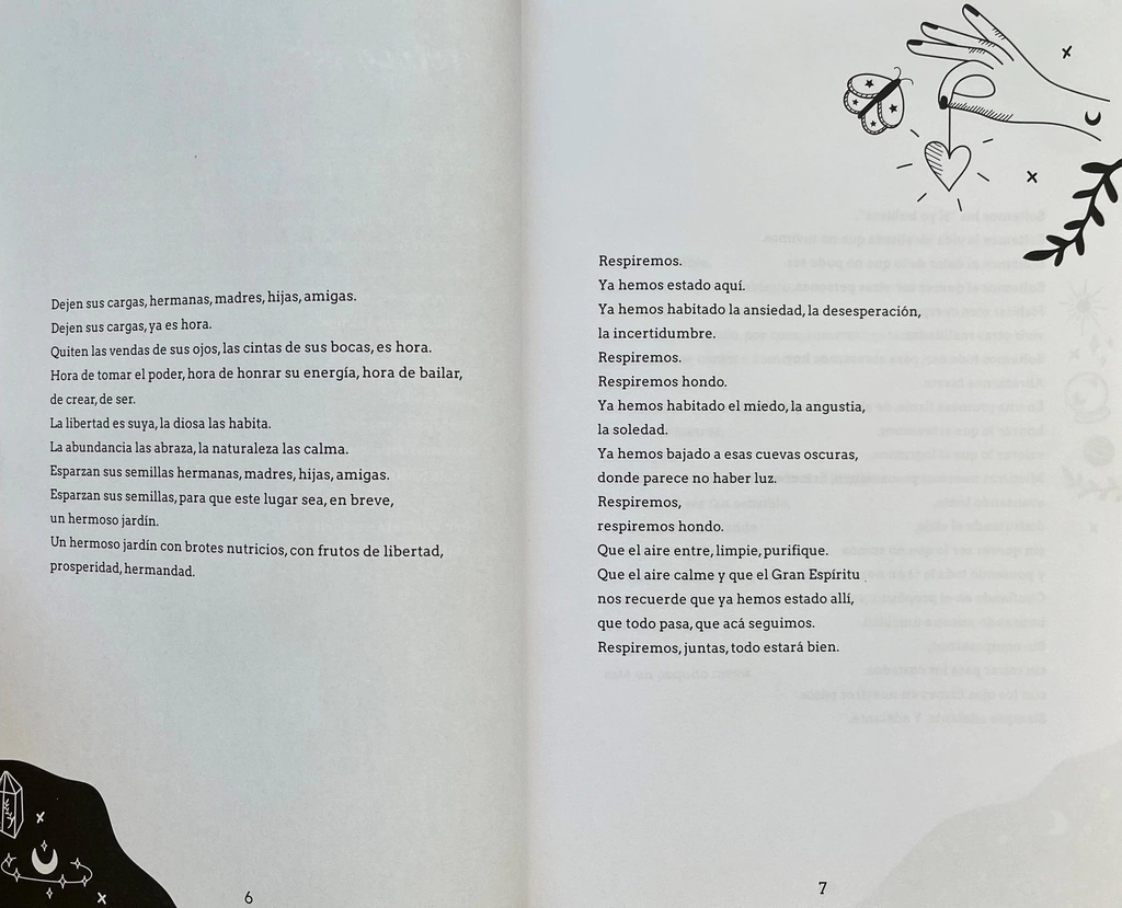 Julieta Suárez Valente es una apasionada de los lenguajes simbólicos y la búsqueda interna, tiene formación en Astrología Evolutiva y Tarot. Da clases de Runas, Oráculos, y dicta talleres y seminarios sobre Salud Energética, Emprendimiento y Liderazgo, Metafísica y Neurociencia, entre otros. Dirige la escuela online MultiEspacio Evolutivo, coordina viajes a lugares sagrados y escribe el panorama astrológico semanal en Clarín. Es feminista y vegana, y adhiere a los movimientos por la liberación animal y la defensa del medio ambiente. Escribió los libros Astrología del liderazgo y Empoderada Julieta escribe, nombra, hila red con palabras; red que sostiene, contiene y nos invita a tener una nueva mirada sobre el mundo, acá en la Tierra y un poco por allá arriba también. Todo lo conecta, apasionada, porque ella sabe que todo está conectado. Esa es la invitación, y una se siente muy agradecida por este libro y esta voz y esta unión. Celeste Cid Actriz Es instantáneo: leer a Julieta me hace bien. Me habla a mí. Con amor, directa, cruda y piadosa. Eso. Tiene tanta piedad. Y me despierta. Me hace conectar con algo muy adentro, antiguo a veces, que busca sanarse. Y lo hace sin escándalo ni preámbulo. Como hablando con su mejor amiga. Pero tenés la suerte de que tu mejor amiga sepa de qué habla. Y que también lo haga desde su experiencia personal, comprometida. Sin pudor, sin juicio. Y hasta con humor. Guiños luminosos de bruja luminosa. Esa que entiende y te hace entender que cada unx hace lo que puede. Pero que igual te va a desafiar. No la va a dejar pasar si puede despertarte. Con dulzura y alegría, pero sin negar la sombra. La abraza siempre porque sabe que de eso depende sanarse. Te ayuda a perdonarte y perdonar. Te mira a los ojos y te dice: está bien sentirse así. Estamos para aprender. Vení, tengo un libro que abraza. Julieta Díaz Actriz y cantautora Leer a Julieta es abrir una puerta. Es entrar en un mundo de realidad y magia. Donde comprendés la importancia de ser prioridad en tu vida. De darte permisos para aceptar lo bueno y lo malo, lo lindo y lo no tan lindo, disfrutar del vuelo sin rechazar la caída. Ser intensa, llorar, gritar, sacar afuera, hasta inundarlo todo. Limpiar, lavar las penas, amar con el fuego encendido en el pecho. Abrazar los miedos y de ser necesario volver a curar las heridas. Se abre la puerta. El alma recuerda y sale a jugar. Entonces... desnudamos los demonios y bailamos entre flores perfumadas. Lloramos a mares. Hacemos rituales, ¡somos brujas negras! ¡Blancas! ¡Coloradas! Somos SAGRADAS. Es volver a conectar con la intuición. Leer a Julieta es abrir esa puerta que nos lleva a andar por el camino que tiene corazón. Gloria Carrá Actriz y cantautora