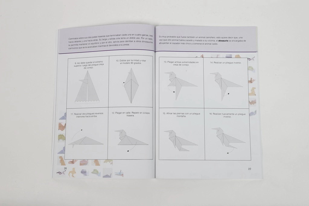 Hace millones de años, los dinosaurios reinaron en el planeta Tierra. De gran tamaño, medianos o pequeños, se desplazaban en dos o cuatro patas, volaban o nadaban. Aún hoy los científicos se preguntan acerca de las causas de su extinción, pero a través del fascinante arte del plegado del papel, tiranosaurios, pterodáctilos y apatosaurus vuelven a la vida. En este libro, podrás encontrar los símbolos del origami, los pliegues y las bases; y el paso a paso para crear tu dinosaurio favorito.