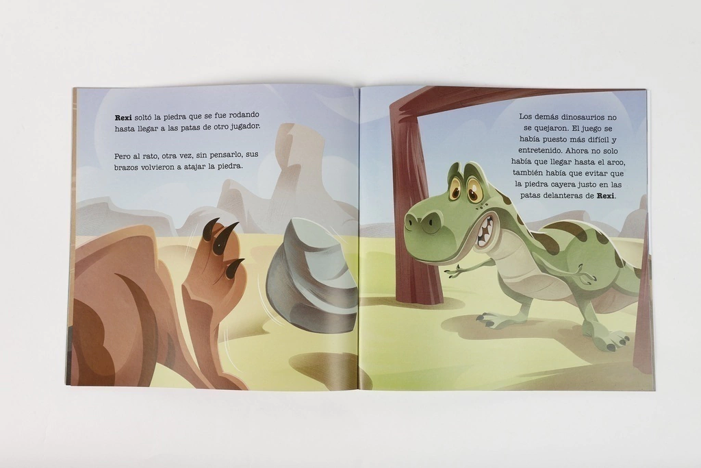 El campeonato de piedra al arco está por empezar, todos los dinosaurios se preparan, menos Rexi que pone excusas para no participar. Pero las ganas de ser parte de la diversión van creciendo y de pronto, sin pensarlo demasiado, se une al partido. Una historia sobre la importancia de vencer nuestros miedos y lo increíble que es jugar con los amigos. Además, ¡con información asombrosa sobre el dinosaurio protagonista!