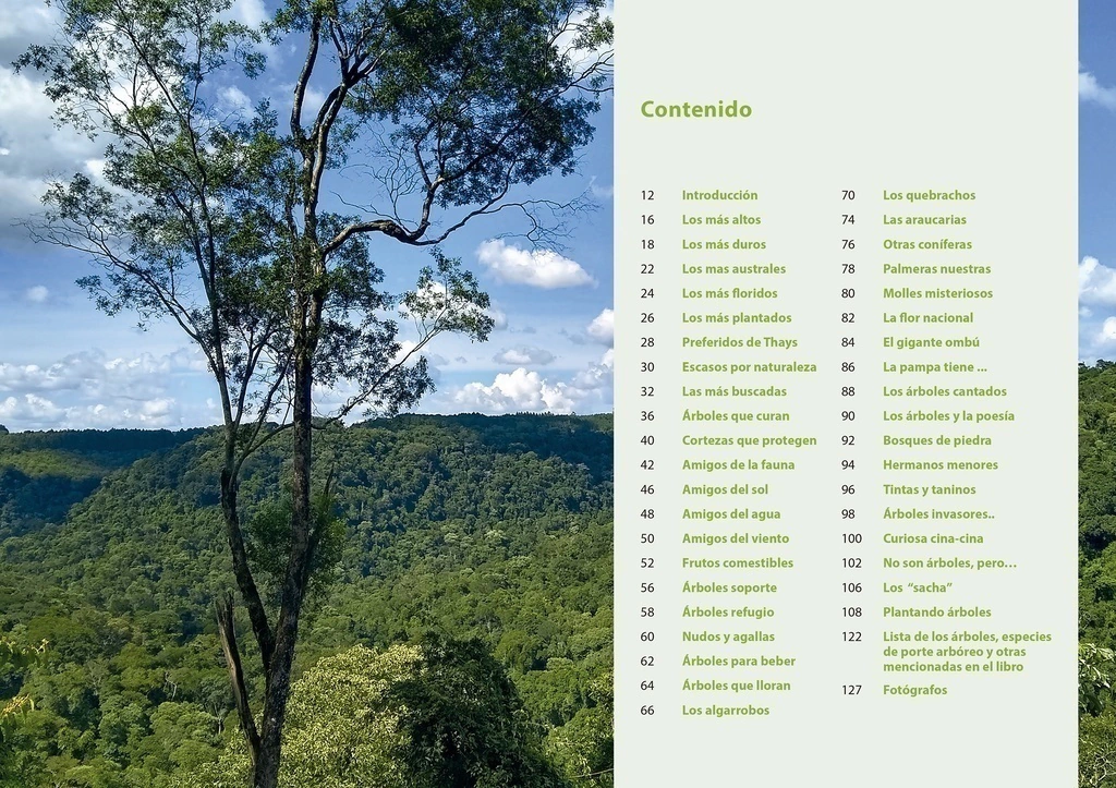 Este es un libro original e introductorio al fascinante mundo de las árboles que pueblan la Argentina. A partir de un recorrido por bosques y selvas, se realza la importancia ecológica de las distintas especies, sus estrategias de vida, las formas de dispersión, su rol como alimento y refugio para numerosos animales hasta curiosidades folclóricas y botánicas. Con excelentes fotografías, el palo rosa, el timbó, el pino paraná, el jacarandá, los lapachos, las palmeras, los algarrobos, los quebrachos, el sauce criollo, el ceibo, el ombú, el alerce, el arrayán y la lenga, entre otros, se transforman en grandes protagonistas.